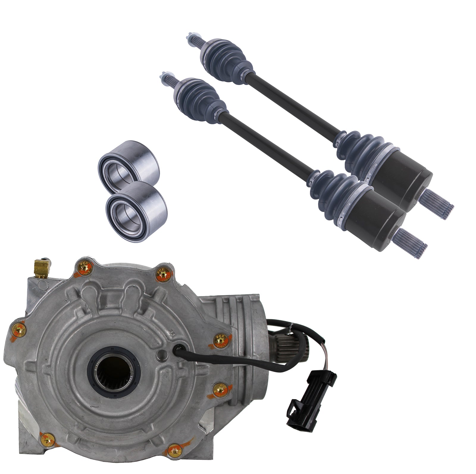 This kit includes a front differential with two axles and wheel bearings.